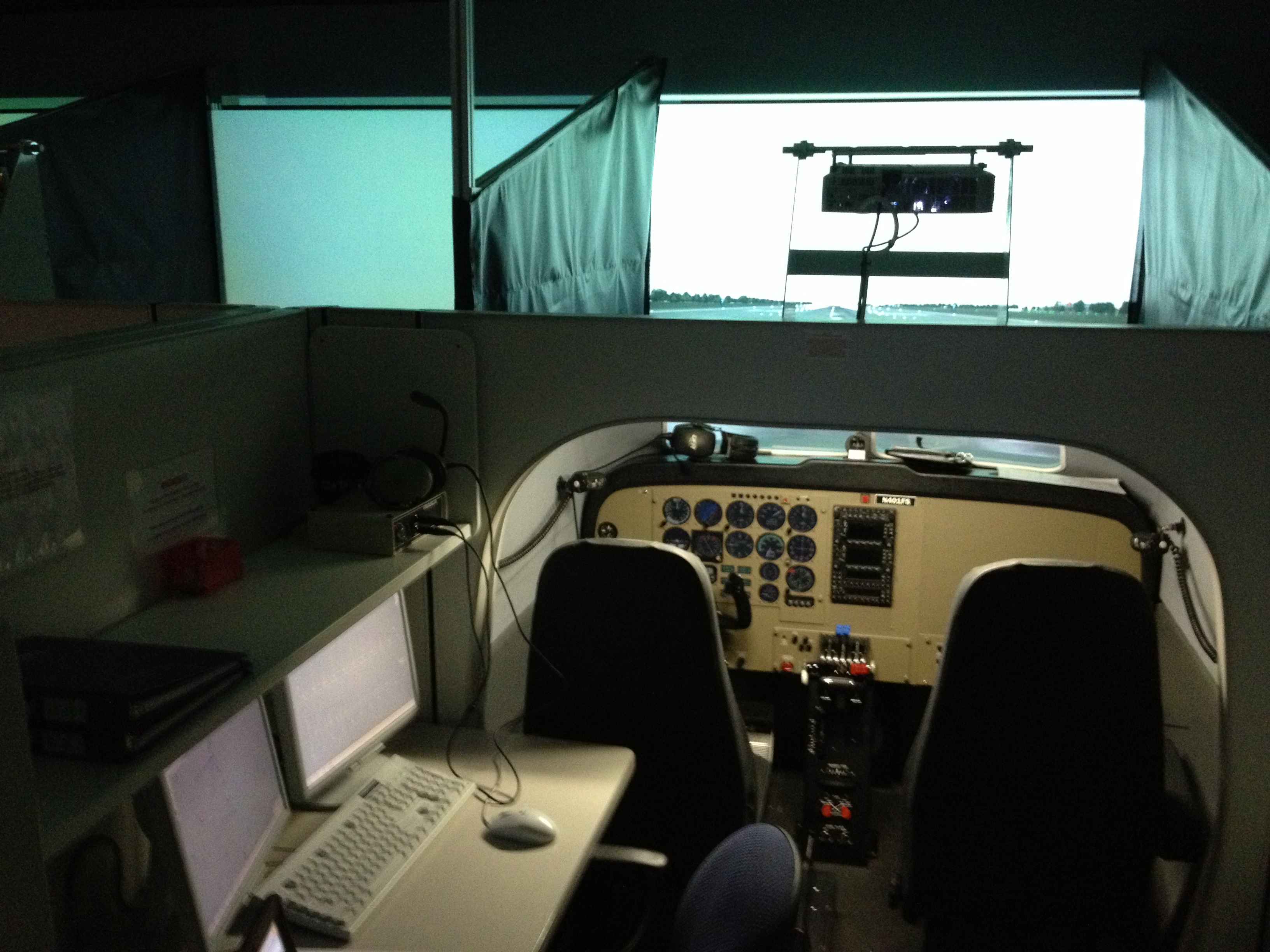 Die ersten Flüge fanden nun aber nicht in einem realen Flugzeug sondern in einem Simulator, dem sogenannten Frasca statt. Dort wird eine Piper 44 Seminole simuliert. Diese ist auch auf dem Bild zu sehen. Die Seminole hat 2 Triebwerke a 180 PS. Also doch schon ein kleiner Unterschied zu einem Motor mit 160 PS wie bei der Piper 28 Cadet. Allerdings ist die Seminole nicht das Flugzeug, welches wir nach Ende des Simulators fliegen, sondern eine Piper 28 Arrow. Die hat zwar nur einen Motor, der hat aber 200 PS und ein Einziehfahrwerk besitzt die Arrow auch schon. Also werden wir uns ab nächstem Donnerstag schon ein bisschen mehr wie richtige Piloten fühlen.